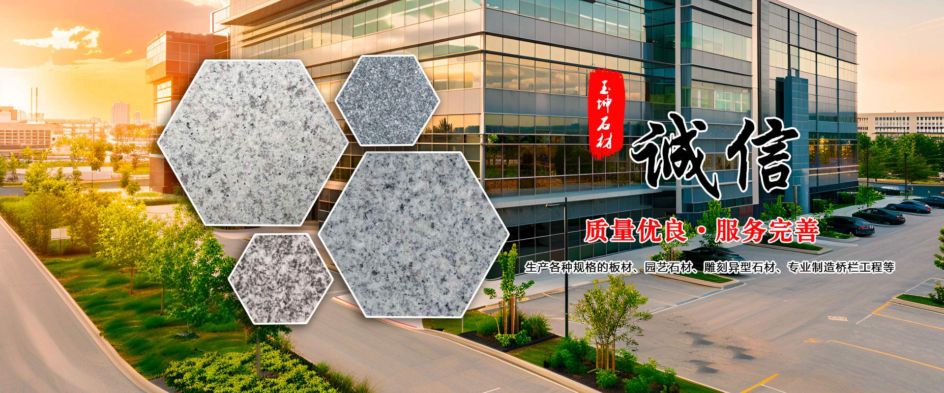泗水玉坤石材廠始終堅持“以質(zhì)量求生存,以信譽求發(fā)展”的經(jīng)營理念和“誠信為本、顧客為上”的服務(wù)宗旨,在廣大客戶心中和同行業(yè)中樹立了良好的形象,我們公司真誠地期望與您攜手共創(chuàng)雙贏之道,共享石材業(yè)的美好明天。我們真誠期待為您服務(wù)。